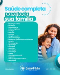 Saúde completa para toda a sua família! 💙✨ Aqui na Clínica Limovida, cuidamos de você com um olhar integral, acolhedor e especializado! ✅ Odontologia de